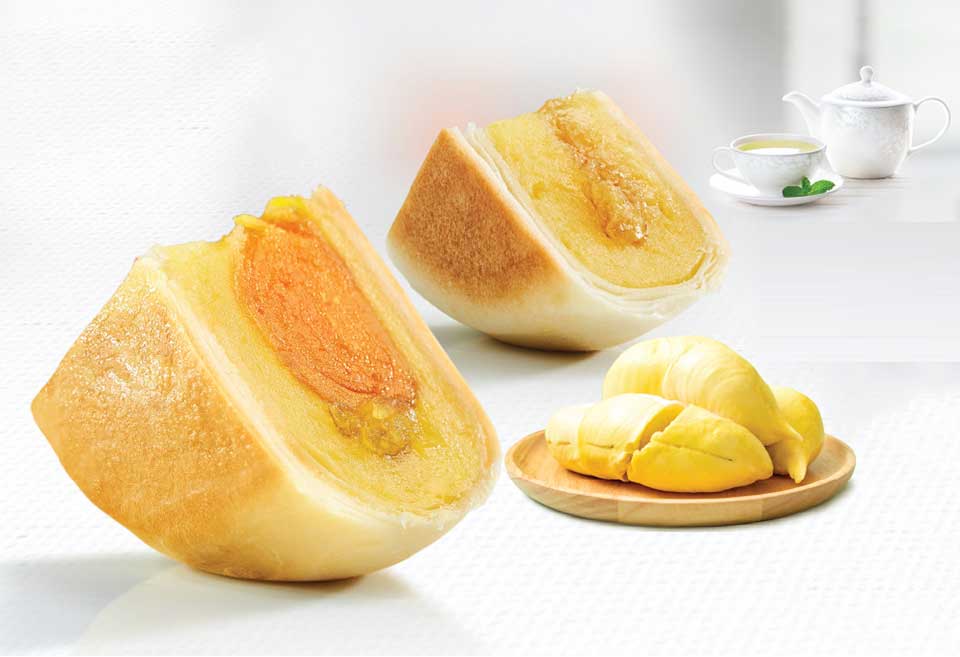 Nguyên liệu: Đậu xanh 23,8%, bột mì đường cát, sầu riêng 15,7%, dầu thực vật, mứt bí, lồng đỏ hột vịt muối, mạch nha, nước, màu thực phẩm B-35-WS-P
